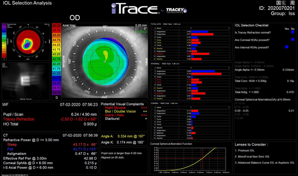 ▲术前右眼视觉质量分析检查
