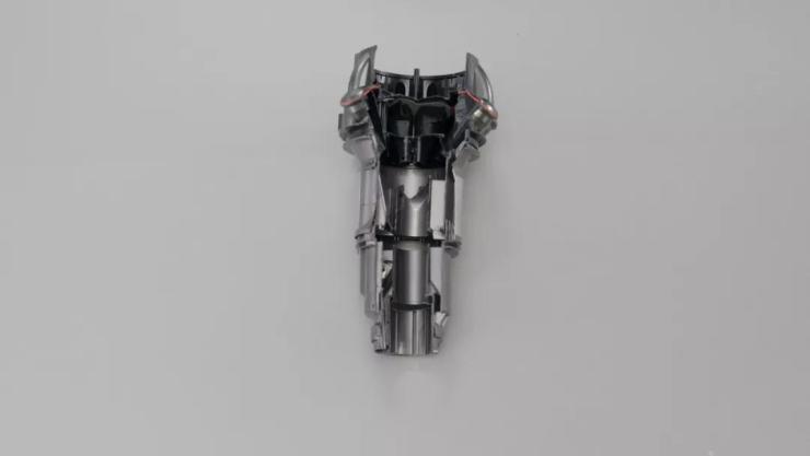 戴森的气旋结构,下窄上宽,中间4个,外圈10个小的锥形气旋,侧面还有很多导风孔设计。同时,它在侧面还有很多个紧密排列的导风孔设计。这样的气旋设计可以让尘气有效分离,增加吸尘效率、减少堵塞概率。