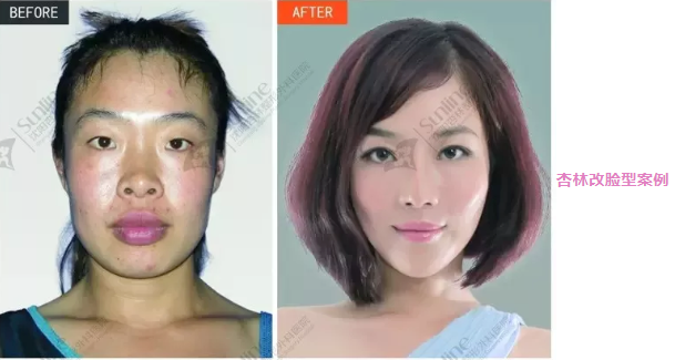 杏林改脸型案例表现:下颌骨宽大,但耳朵下方的下颌角不发达适中偏小,下巴呈一字形的棱角分明,或是圆形,看起来很沉闷的感觉。俗称“马脸”。