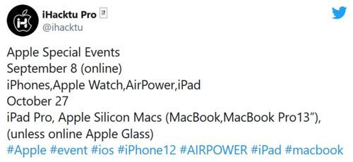 当下话题热度最高的机型,苹果的iPhone 12系列绝对当仁不让。在今年早些时候,多方消息显示,由于代工厂停工、供应链暂时停产的原因,苹果将会推迟iPhone12系列的发布,不过根据知名爆料者iHacktu Pro的社交平台推文来看,苹果将在9月8日于美国加利福尼亚的苹果公园乔布斯剧场正式发布iPhone 12系列。