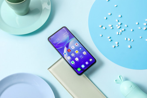 机身正面,vivo Y70s搭载了6.53英寸FHD+星眸屏幕,屏占比高达 90.72%,颜值更高,显示面积更大,显示内容更多。拥有光影外观与星眸屏的vivo Y70s,为用户带来了全新的视觉盛宴。