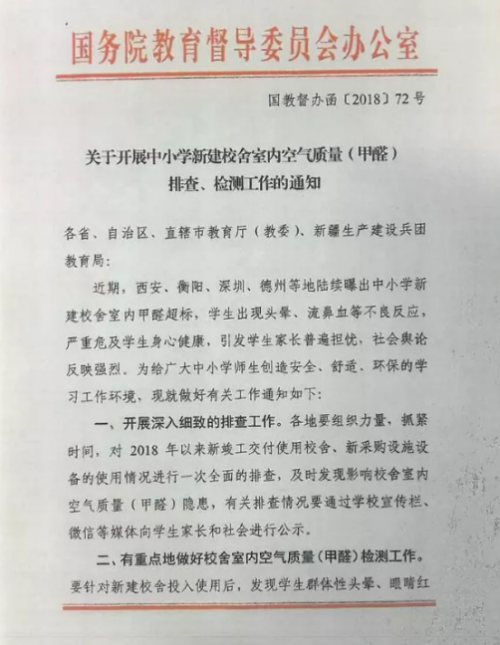 政府下发学校甲醛检测文件