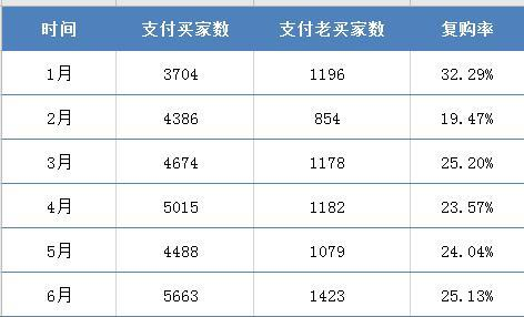 因为消费者买单是现下模式的最好验证。根据天猫旗舰店数据,梵蜜琳2020年上半年度每月的复购率近25%。其中,3704位买家在1月购买了产品,当中老买家数量为1196,复购率占比为32.29%,高于同业水准。