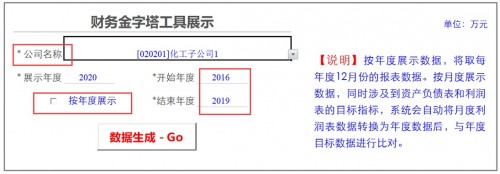 确定好公司,按年度还是按月份,开始年度(月份),结束年度(月份)。特别注意:如果是按照月份展示,目标指标需要把月份数据转换成年度数据。