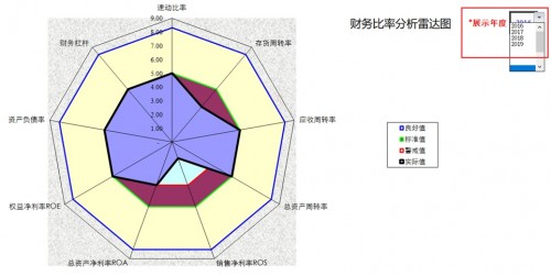 在这里可方便查看每个期间的企业财务比率分析雷达图各项数据。