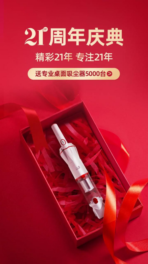 凭借过硬的产品与服务,小狗电器成长为深受业内人士认可、广大用户喜爱的品牌,恰逢21周年庆,小狗生日庆典活动正在进行,诚邀新老用户一同参与,活动期间小狗将免费送出5000台专业桌面吸尘器。7月28日-30日,天猫小狗电器旗舰店开启周年狂欢,多款清洁好物携限时好礼登场, 此外,还有每晚21点特供惊喜福袋、1分钱赢好礼活动等着你,千万别错过了!