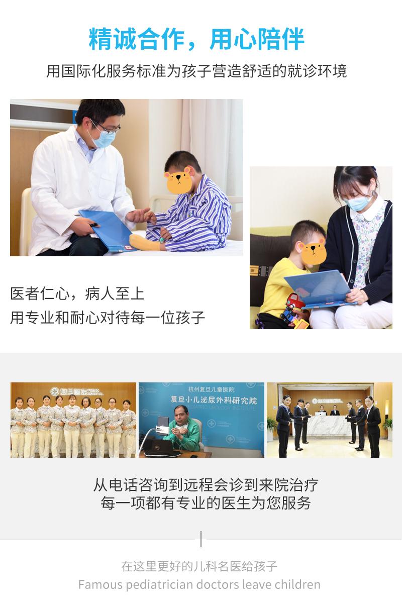 长期以来,杭州复旦儿童医院秉承着“倡导人医关怀,创造满意服务”的理念,要求每位医务工作者把患者的一切需求放在心中,时刻关注患者的情况,在第一时间提供最贴心的服务和帮助。从线上咨询到线下就诊、从治疗过程到康复训练,杭州复旦儿童医院为你一一把关,精准诊疗,用心呵护每一位患儿的健康,不负每一位家长的信赖。
