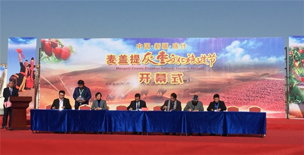 2018年10月27日,麦盖提县灰枣文化旅游节开幕。临沂国际商品交易中心应山东省对口支援新疆工作指挥部和麦盖提县委、县政府邀请,派团出席了本次活动,并与麦盖提县政府现场签定了结对帮扶合作协议。