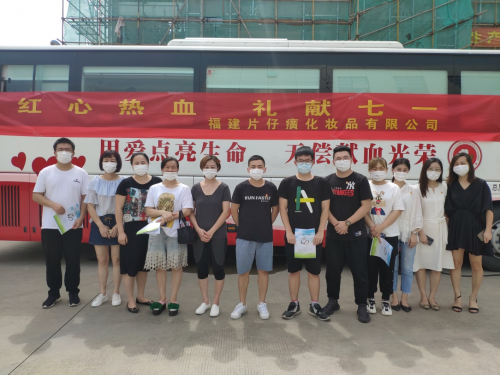 为庆祝中国共产党建党 99 周年,弘扬共产党员的无私奉献精神,7月10日上午,福建片仔癀化妆品有限公司组织开展了以“红心热血 礼献七一”为主题的“七一”建党节献血活动,以实际行动献礼“七一”,共庆党的生日。