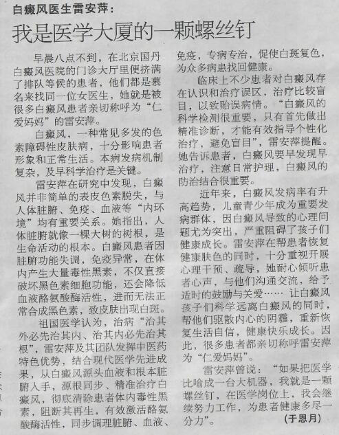 北京国丹白癜风医院雷安萍:我是医学大厦的一颗螺丝钉