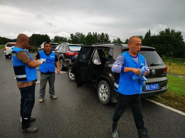 7月16日,在大坝边一处发生管涌的农田,e代驾志愿者们同73091部队子弟兵一起铲沙石,运麻袋,填堵管涌处,并协助抗汛工作人员将公司紧急采购的防汛物资,送往抗洪救灾一线。
