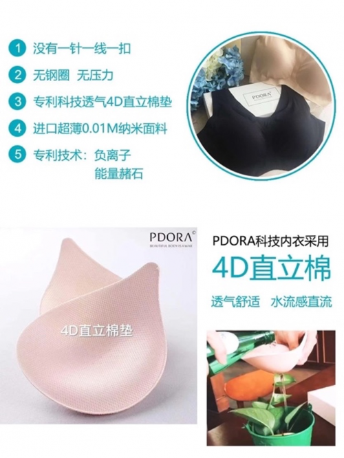 现在市面上已经有了很多黑科技内衣,有一种是搭载了负离子+能量锗石功能的科技文胸,比如说PDORA科技内衣。PDORA科技内衣这种对比传统内衣来说,不管是材质还是穿着体验、科技含量方面,都要更加出色一些。面料轻薄、足够透气,并且具备一定的提拉作用,照样可以穿出迷人曲线。
