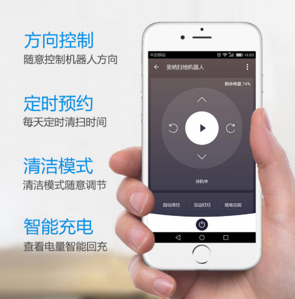 使用更便利如斐纳TOMEFON-TF-G808扫地机器人,所具备的APP智控功能在你出门在外需要打扫室内环境时,可以通过远程操控在手机APP上对机器人下达定时清扫指令便可,机器人便会在设定的时间内开启清扫,再加上在APP上还可查看机器人的工作情况或电量,让你时刻掌握机器人动向。