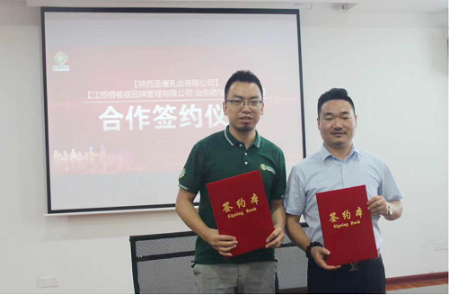 考察团一行还来到位于世界羊奶之乡——陕西富平的陕西圣唐乳业有限公司,在充分交流之后,江苏栖餐庭品牌管理有限公司董事长、治伦硒与健康商学院执行院长卢朋刚与圣唐乳业副总经理武超达成合作共识,将合作推出一款高品质的富硒高钙多维调制羊奶粉。“为耕者谋利,为食者造福。这是栖餐庭一直践行的使命。此次陕西之行,我们要用实际行动大力支持富平地区脱贫攻坚,也让更多老百姓都能喝上好羊奶,让富硒食品真正进入万千百姓家庭餐桌!”卢朋刚谈到。
