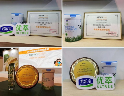 2019年6月,在第13届全球乳制品大会上,君乐宝乐铂K2儿童成长配方奶粉和“悦鲜活”牛奶,分别斩获“最佳儿童乳品奖”和“最佳工艺创新奖”两项大奖;2020年7月,君乐宝推出的首款优萃有机奶粉,在第14届中国国际有机产品博览会上,揽获“年度有机奶粉金奖”“年度最具影响力品牌奖”两项国际大奖。
