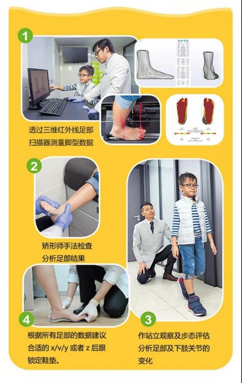 目前,针对于14岁以前就出现了严重扁平足现象的孩子,配置适合孩子足部发育的矫正鞋是比较保守且有效的矫正方式。