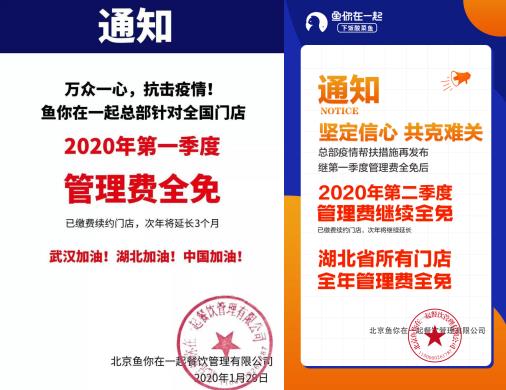 不仅如此,作为一家有社会责任感的品牌,鱼你在一起还对门店合伙人实施了费用减免政策。全国门店第一、二季度的管理费全免,且湖北省所有门店全年管理费全免。这个暖心的减负举措最大限度降低了门店的损失,同时获得了业界的一致好评。