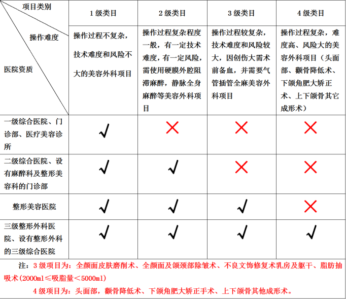 美容医院可开展一、二、三级医疗美容项目;
