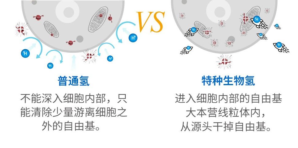 最后,赛立复的NADH还会分解出特种生物氢(H)可以进入细胞内部的自由基大本营线粒体内,从源头干掉自由基,同时有很强的抗氧化性,能够消除炎症。