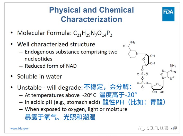 相比于另一个抗衰老网红NMN,线粒体素(NADH)转化为NAD+的效率更高,但线粒体素也有缺点,就是它很不稳定,怕高温、怕光、怕水、怕胃酸、怕氧气,对制备工艺要求极高。