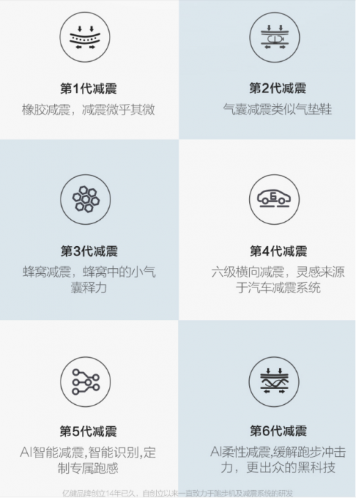 除了以上动作外,亿健还有一个核心优势就是减震技术研发。从2006年创立伊始先后更新升级了六代减震技术,而大部分同行还大多停留在第一代技术上。