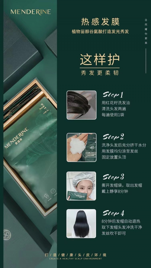曼德琳热感发膜,属于一款黑科技产品,好评如潮。曼德琳热感发膜是一款在家就能轻松做护理的发膜,配备6秒精油自动发热帽,8分钟就能做完精油spa。一次体验,就能够柔亮无敌,效果可以媲美千元护理级别,强烈推荐你入手。曼德琳热感发膜是曼德琳品牌的超好评产品,也很值得代理加盟。