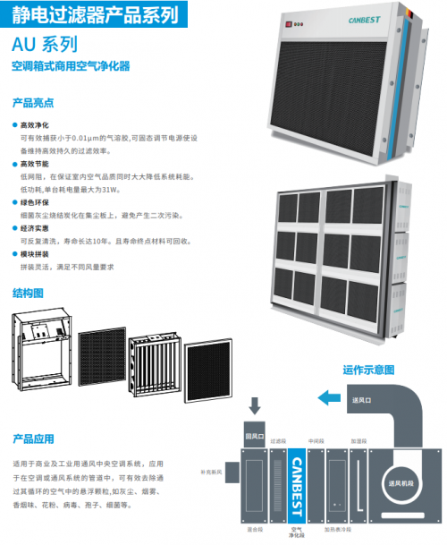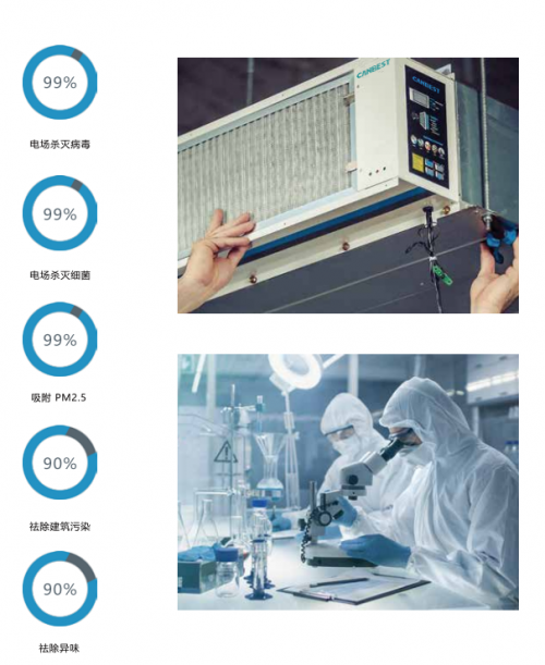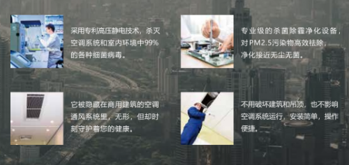 德国科林贝思CANBEST空气净化杀菌消毒系统,采用专利高压静电技术,可以杀灭空调系统和室内环境中99%的各种细菌病毒。
