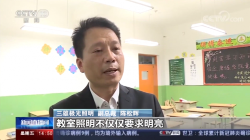 关注青少年视力健康,一直以来是备受社会各界人士所关注的焦点。教室照明作为直接关系学生视力健康的因素,正逐步被大众所熟知。临近开学,中央电视台《新闻直播间》就教室照明改造话题,采访了广东知名照明企业三雄极光副总裁陈松辉。他表示教室照明不应只做到明亮,还要关注光健康。