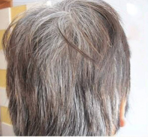 这就是我奶奶原始的头发情况,对比起来完全是两个人是吧。能有这天壤之别,这完全是要感谢养发有奇方乌发方。