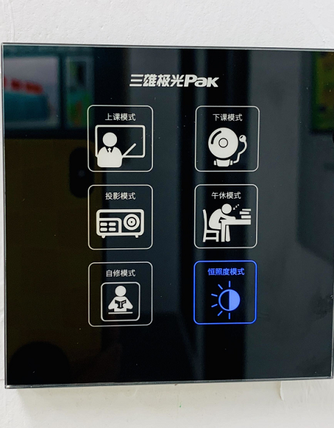 此外,结合教室的日常使用,可按需预设各类场景模式(如上课、下课、投影、自习、午休等),一键切换即可控制灯具及窗帘,将教室光环境调节至最佳状态。在保证必要照明的同时,有效减少了灯具的工作时间,节省了不必要的能源开支,也延长了灯具的寿命。这种多场景智能控制,也能胜任幼儿园、美术室、心理辅导室等高需求的空间。