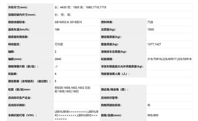此次申报的新车型在外观方面没有任何变化,车身尺寸也依旧为4435/1850/1680mm,轴距为2640mm保持不变。