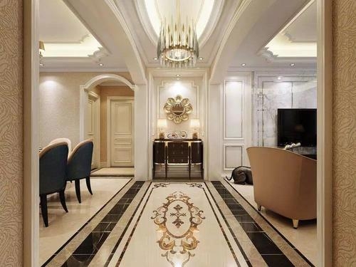 石材端庄典雅 石材是可翻新的瓷砖却不能,石材翻新百年如新,石材附有着大自然给予的自然纹理,每一块都是独一无二,都附有生命力,石材贴客厅的话非常大气,看西方国家都喜欢用石头来做外墙和地面铺砌。