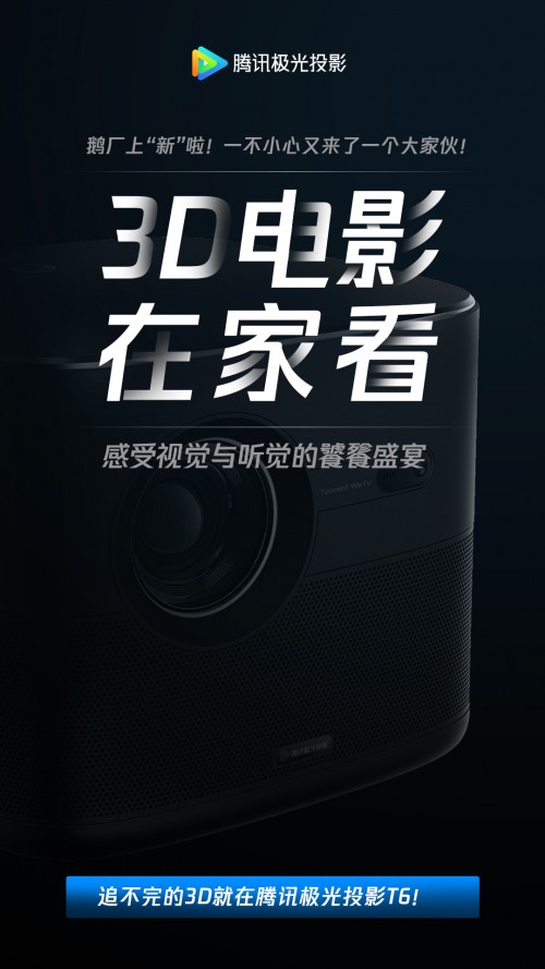 2020年10月9日,腾讯极光即将发布T6投影仪,目前消息报道,腾讯极光T6投影仪在配置上为:自动四向梯形校正,侧投也能投出方正形状,并拥有自动对焦和缩放位移等功能。0.47DMD真1080p的高清晰画质,1900ANSI流明亮度,可以说以上配置称得上此款机器为旗舰级的高配投影了。