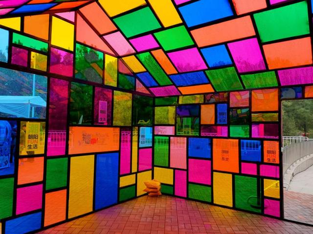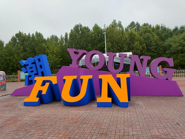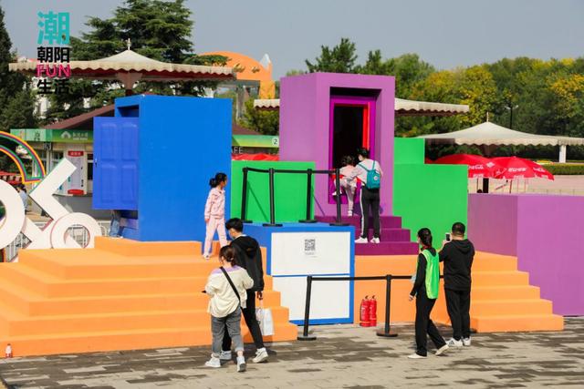 除了以上这些网红打卡专区的神奇搭建,在朝阳公园的其他主题区几乎每一处都有便于游客拍照的地方,例如"声动潮阳"主题区为游客设置了类似杂志的背景。每按下一次快门,都会出现一张精美的写真大片。