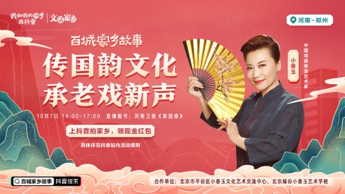 在“文话家乡”板块,邀请豫剧名家“小香玉”开启抖音平台首播,讲述豫剧传承故事。直播以「传扬」为主线,全程围绕「家乡」、「豫剧」展开,以文化传承人——小香玉老师为支点,通过“一人一地·歌唱家乡美好”、“老中小代表演绎豫剧传承”等特色环节,多维度讲述家乡特有豫剧文化,从而强化中原区域最有特色的标签——豫剧艺术,深化家乡人文价值,激发传统文化新活力。