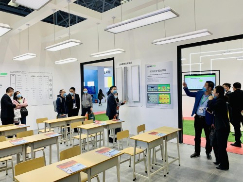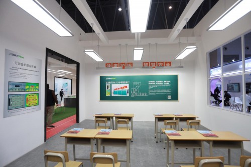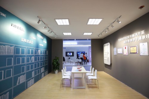为了让大家更直观地体验到产品的特性,三雄极光在本次展会以近400㎡的超大展出面积,全方位展示了涵盖幼儿园及中小学校内多个情景空间,如教室、阅览室、美术室、党建室、办公室、幼儿活动室、校道等,让来宾身临其境体验新一代学校健康光环境。
