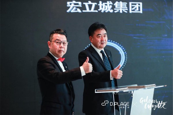 宏立城集团总裁贺海飞,宏立城集团副总裁兼商业集团总裁邵友松按下手印,与法国老佛爷百货正式签约