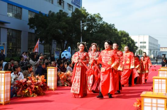 金秋时节的江南天高云淡,叠翠流金。在这如诗如画的美景中,10月24日上午,伴随着欢乐祥和的婚礼进行曲,8对新人身着中式礼服,心怀美好憧憬,携手走过风雨长廊,在远东家人的见证下许下相伴终生的诺言。欢乐喜庆的婚礼像一道美丽的风景线,装点了这个秋天,也给远东带来了更多浪漫色彩。