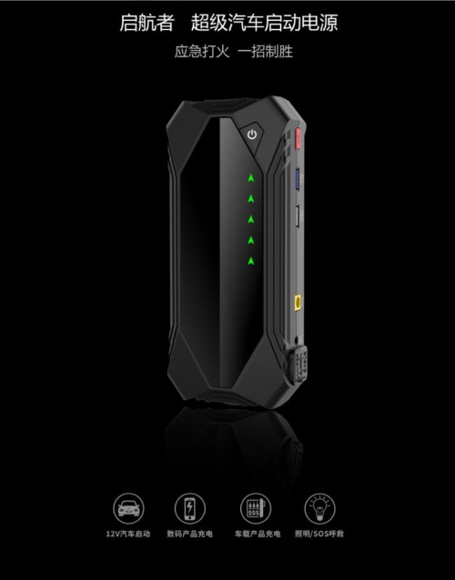汽车应急启动:启动性能优越,拥有18000mAh大容量,能提供300A-1200A的启动电流,即使是在严寒酷暑(-20℃~60℃)恶劣的环境下,仍可轻松启动。