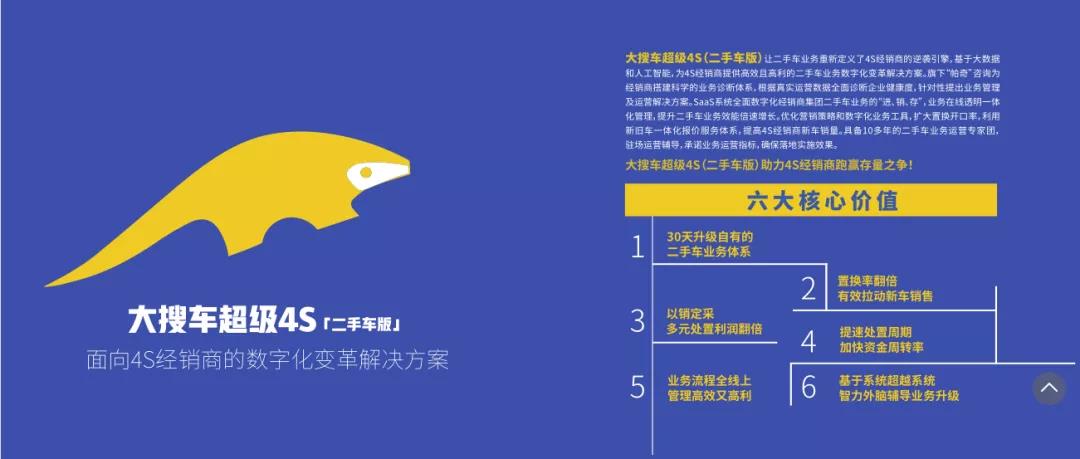 车易拍成立于2006年,在二手车在线拍卖、标准化检测等领域积淀了十几年。同时,车易拍将自身的拍卖交易能力与大搜车SaaS服务能力融合一体,推出了4S经销商数字化变革解决方案——超级4S(二手车版)。对车易拍而言,永通集团也是较为理想的合作伙伴。一方面,永通是湖南省经销商集团的龙头企业,拥有涉及14个品牌的40多家4S店,整体实力十分雄厚。另一方面,永通真正地从战略层面重视二手车业务,将其作为集团重要的盈利业务板块。而有了组织的保证,才能保障二手车业务的数字化能够真正落地。