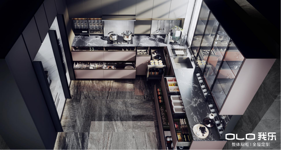 图:我乐家居第十代智慧厨房(莫兰迪系列)