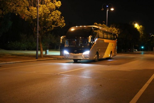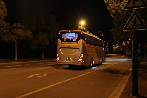 其实海格旅行家的亮点在晚上更多,我们接下来将场景转换到夜晚。到了晚上,海格旅行家打开了车灯。灯光非常的明亮,用户不用担心能耗过高需要频繁更换灯泡,旅行家采用了低能耗高亮度的LED车灯技术,既提高了亮度也提高了零件的寿命。