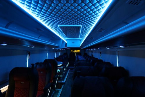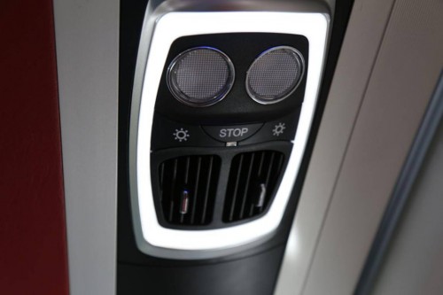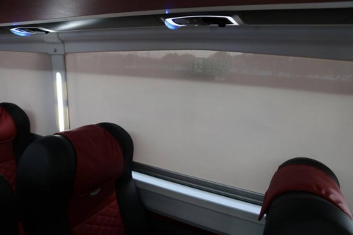 座位顶部的设计借鉴了飞机上的理念,空调出风口可独立开合并且切换角度,这块面板还有两个带有独立开关的阅读灯。乘客区域可以享受到非常丰富的功能,即使面对长时间的长途旅行也能够得到良好的乘车体验。