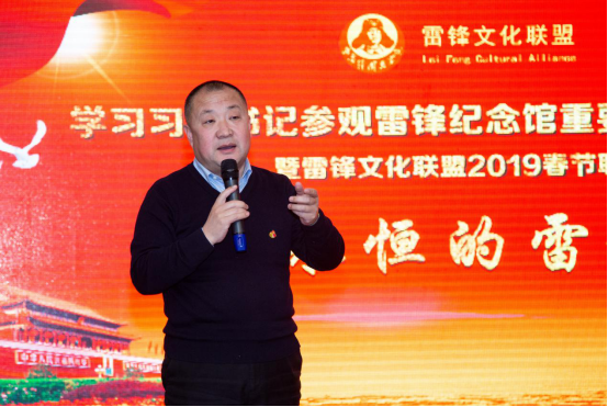 2019年1月22日,由中国文化管理协会雷锋精神研究委员会指导,雷锋文化联盟主办,中擘资产管理集团有限公司、北京习鼎阁资产管理有限公司、中国农村电子商务双创工作委员会、北京学锋文化发展中心承办,农通响亮科技集团有限公司、贵州茅台黔河酒业有限公司、北京食品科技管理人才协会、北京四海义家公益联盟联合协办的“学习总书记参观抚顺雷锋纪念馆时的重要讲话精神座谈会,在北京大方饭店举行。大会邀请了媒体工作人员、相关专家、机构负责人及雷锋文化联盟在京部分志愿服务分团代表等200余人出席。