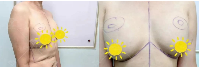 相反,如果基底较窄,则必须选择较小体积的假体,胸也不能做得太大,以避免术后胸型显假。