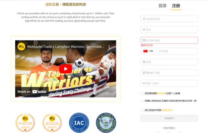 1.访问WeMasterTrade官网//wemastertrade.com/zh/,填写基础信息就能免费注册账号;