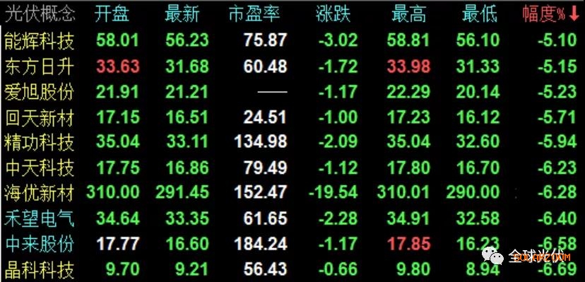 12月2日,整个光伏板块跌幅超过5%的光伏,都是大家熟悉的那些光伏名字:
