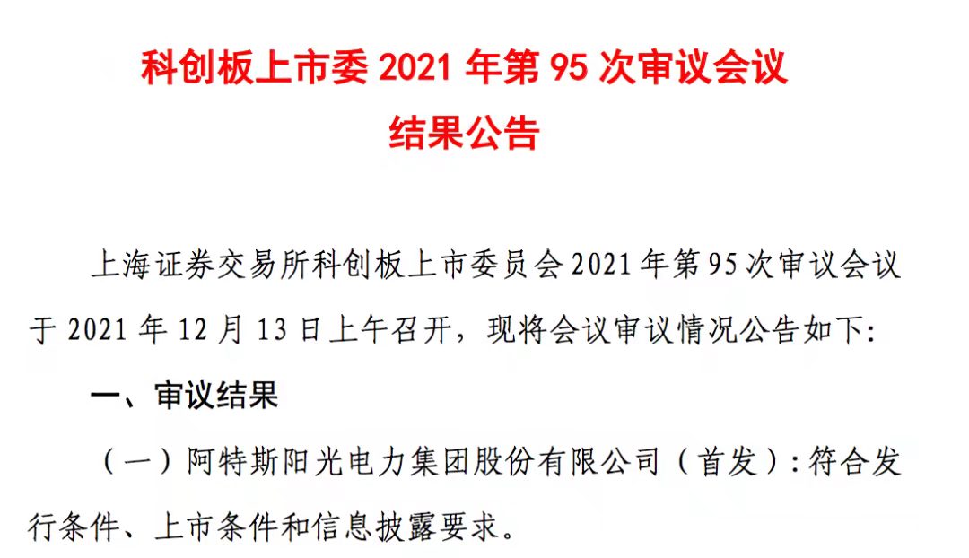 12月13日,经上市委2021年第95次审议会议结果公告显示,阿特斯阳光电力集团股份有限公司获得通过。继天合、晶澳后,阿特斯旗下组件和系统解决方案业务正式登陆A股科创板。