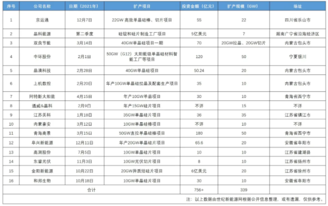 硅片:339GW 总投超756亿