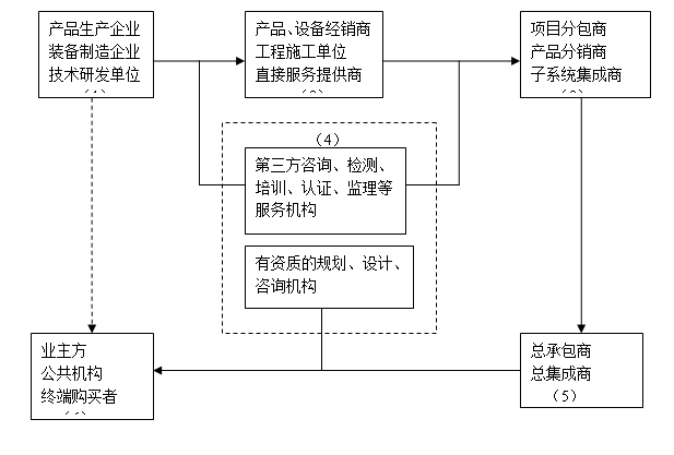 节能环保产业的上游是以装备制造、产品生产企业和技术研发机构形成的以产品供应为主的单位,它所环保面对的市场是一些经销商、工程实施单位和服务提供商;在产业链的中游,是一个以项目或工程分包为主要形式的市场,一些第三方服务机构参与其中;在产业链的下游,是以业主和公共机构向总集成、总承包商发包项目为主的市场,是整个产业链形成的最终目标,也是价值增值最为关键的环节。